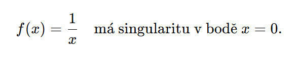 Singularita znamená bod, kde matematická funkce není definována nebo má nekonečnou hodnotu.
