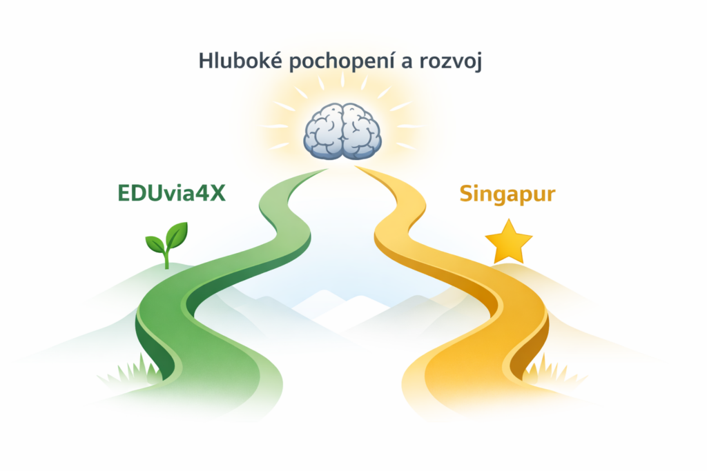 Pokud by se s koncepcí EDUvia4X® seznámil učitel ze Singapuru, pravděpodobně by v ní nerozpoznal cizí nebo vzdálený přístup. Naopak by v ní nalezl principy, které jsou mu hluboce známé. Ne kvůli formě, ale kvůli samotné podstatě.